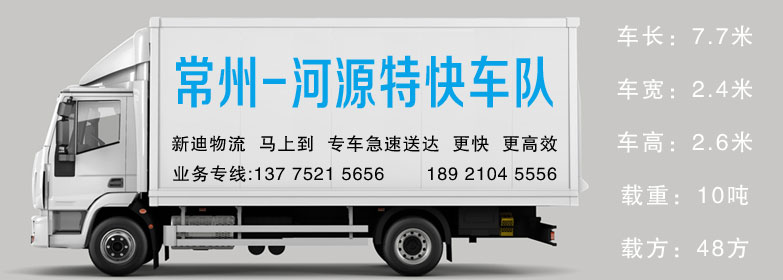 | 常州到河源貨車:7.7米長×2.4米寬×2.6米高 | 常州到河源7.7米貨車載重:10T /方數(shù):≈48方 | 常州到河源專車運(yùn)輸業(yè)務(wù):13775215656 |