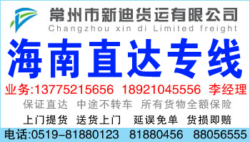 常州到海南物流公司_常州到海南物流專線
